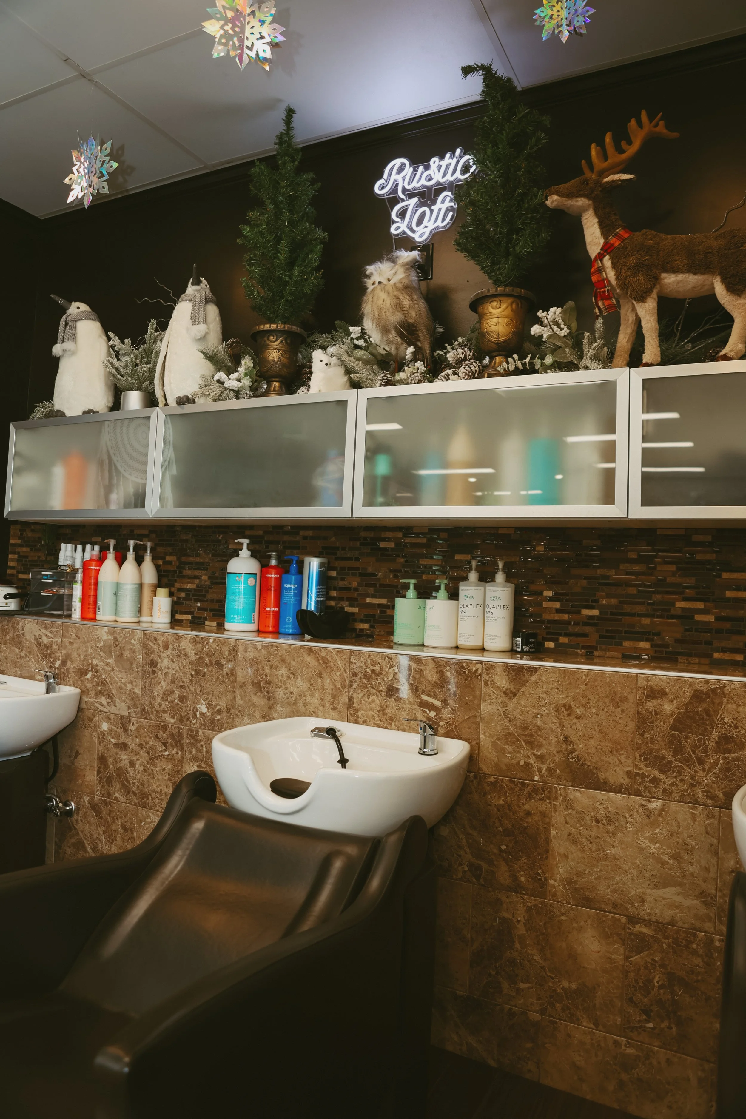 At The Rustic Loft, you can expect to find some very talented stylists working in harmony with each other. Everyone puts their egos aside to create the perfect balance of friendship and professionalism. You will also notice that the salon itself has a very calming vibe to it which aides in the client’s ability to relax and feel at ease while getting pampered. The decor changes with seasons instead of focusing on holidays to help maintain the easy going environment that we offer. Don’t believe us? Come and check us out for yourself!